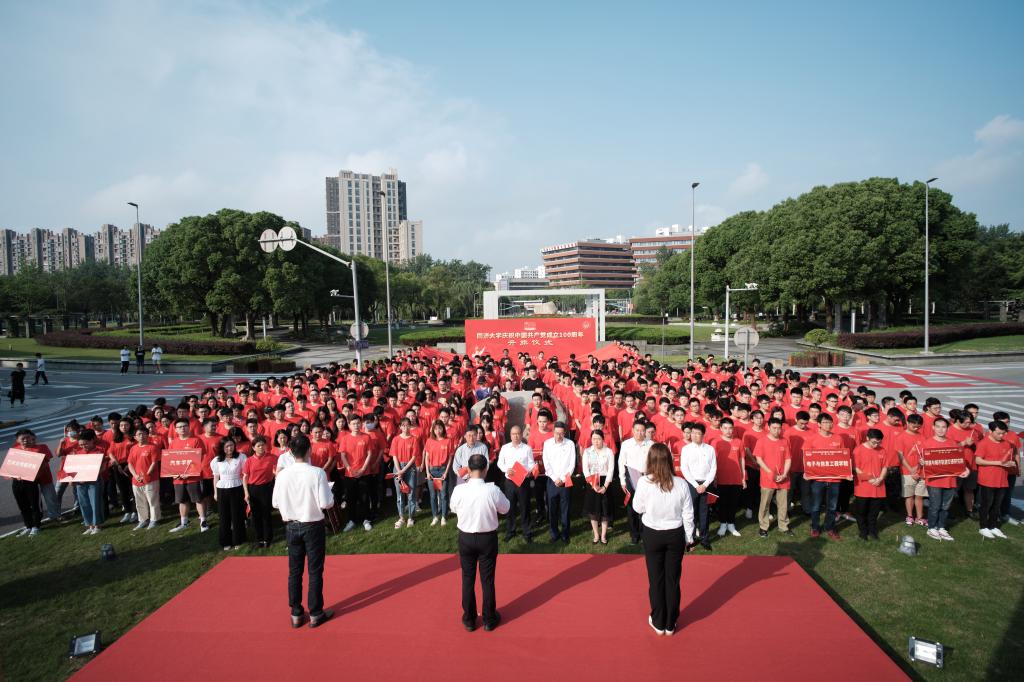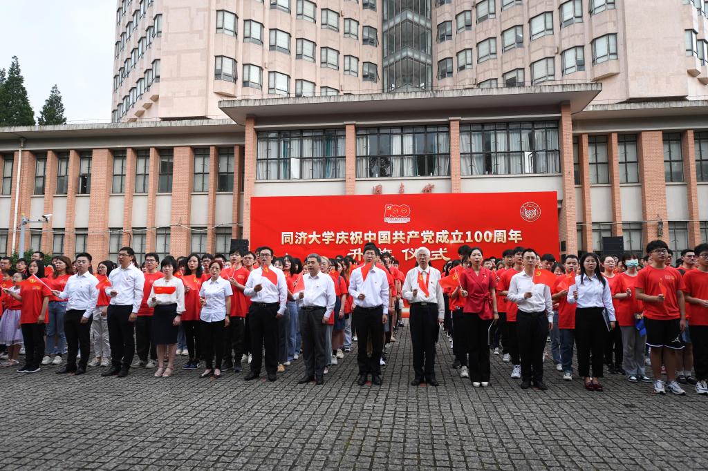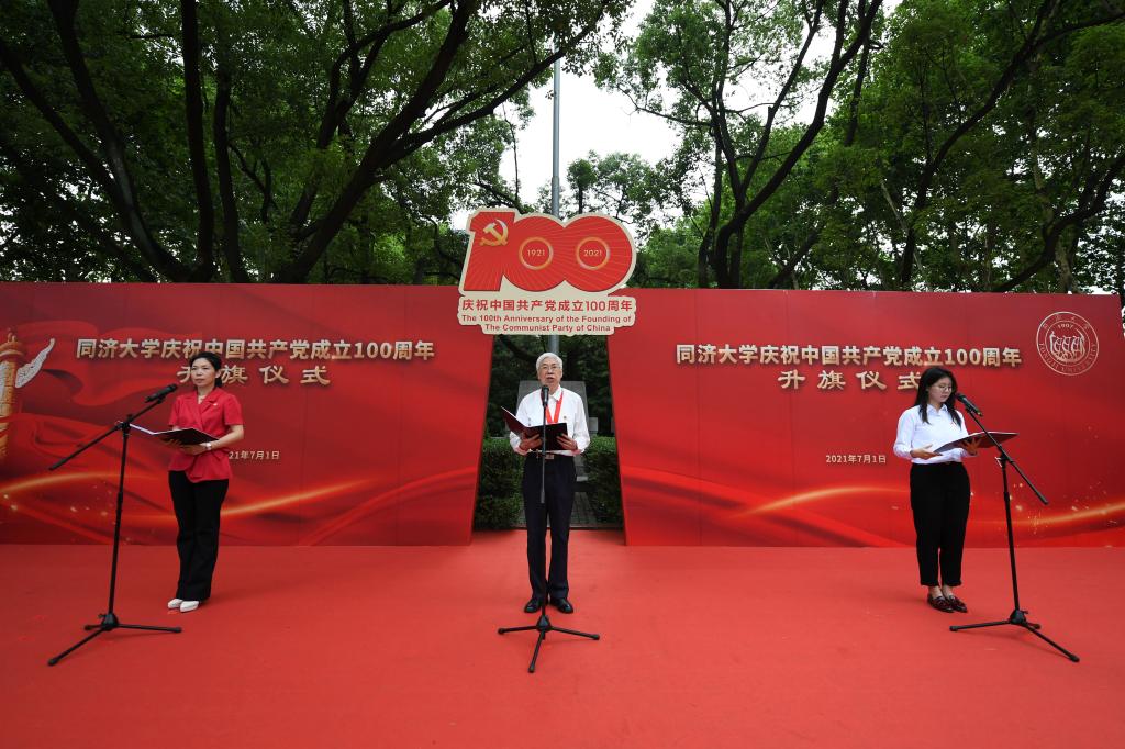 在四平路及嘉定校區,老、中、青黨員師生代表同臺作國旗下的演講,從不同視角詮釋了同濟人一心向黨、矢志奮斗的使命與擔當。