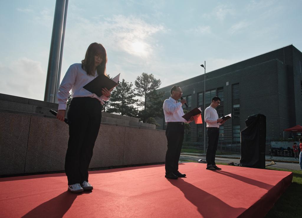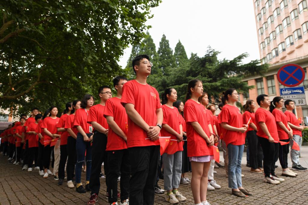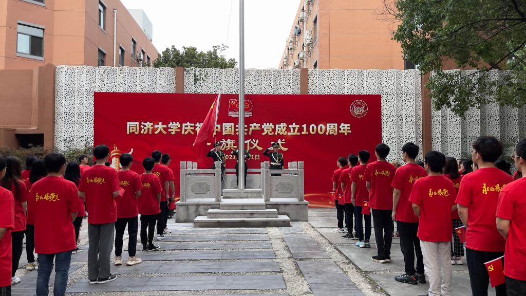 同濟師生面對鮮艷的五星紅旗,高歌一曲《沒有共產黨就沒有新中國》。歌聲嘹亮,愛黨愛國情懷在心中澎湃、激蕩。他們表示,生逢偉大盛世,深感重任在肩。他們將秉持“與祖國同行、以科教濟世”的優良傳統,永遠跟黨走,砥礪奮進,為黨為國奮力書寫壯美動人的時代華章。