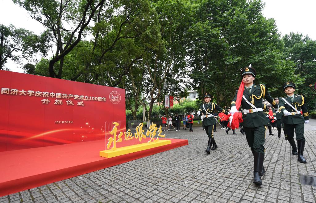 五星紅旗冉冉升起,致敬中國共產黨百年光輝歷程。7月1日清晨,同濟大學分別在四平路校區、嘉定校區、滬西校區和滬北校區隆重舉行慶祝中國共產黨成立100周年主題升旗儀式,向中國共產黨百年華誕送上美好祝福。校黨委副書記彭震偉,機關職能部門、相關學院負責人分別出席四校區升旗儀式。