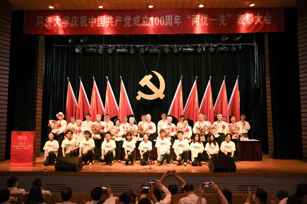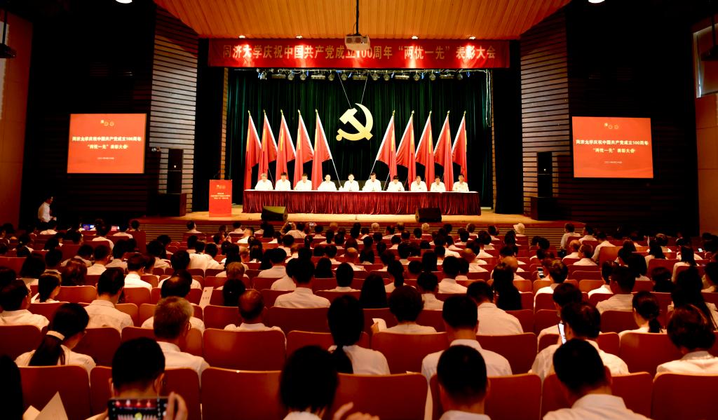 在中國(guó)共產(chǎn)黨百年華誕即將到來(lái)之際,6月29日下午,同濟(jì)大學(xué)慶祝中國(guó)共產(chǎn)黨成立100周年“兩優(yōu)一先”表彰大會(huì)在四平路校區(qū)一·二九禮堂隆重舉行,回首中國(guó)共產(chǎn)黨團(tuán)結(jié)帶領(lǐng)全國(guó)人民不懈奮斗的百年光輝歷程,表彰學(xué)校涌現(xiàn)出來(lái)的一批優(yōu)秀共產(chǎn)黨員、優(yōu)秀黨務(wù)工作者和先進(jìn)基層黨組織,并為“光榮在黨50年”的老同志代表頒發(fā)紀(jì)念章。