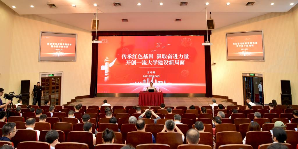 最后,方守恩對學(xué)校前一階段的黨史學(xué)習(xí)教育開展情況作了總結(jié),對下一階段的學(xué)習(xí)教育進(jìn)行了部署。他表示,黨史學(xué)習(xí)教育啟動以來,學(xué)校把握高站位、高標(biāo)準(zhǔn)、高質(zhì)量,以“學(xué)黨史”為載體,以“悟思想”為根本,以“辦實(shí)事”為重點(diǎn),以“開新局”為目標(biāo),高度重視、系統(tǒng)謀劃、守正創(chuàng)新、狠抓落實(shí),教育引導(dǎo)黨員干部師生從黨史學(xué)習(xí)中激發(fā)信仰、獲得啟發(fā)、汲取力量,取得了一定的實(shí)際成效。